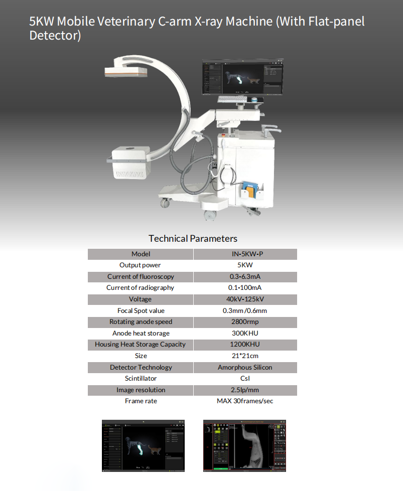IN-5KW-P Mobile Veterinary C Arm X Ray System With 5 kW Generator