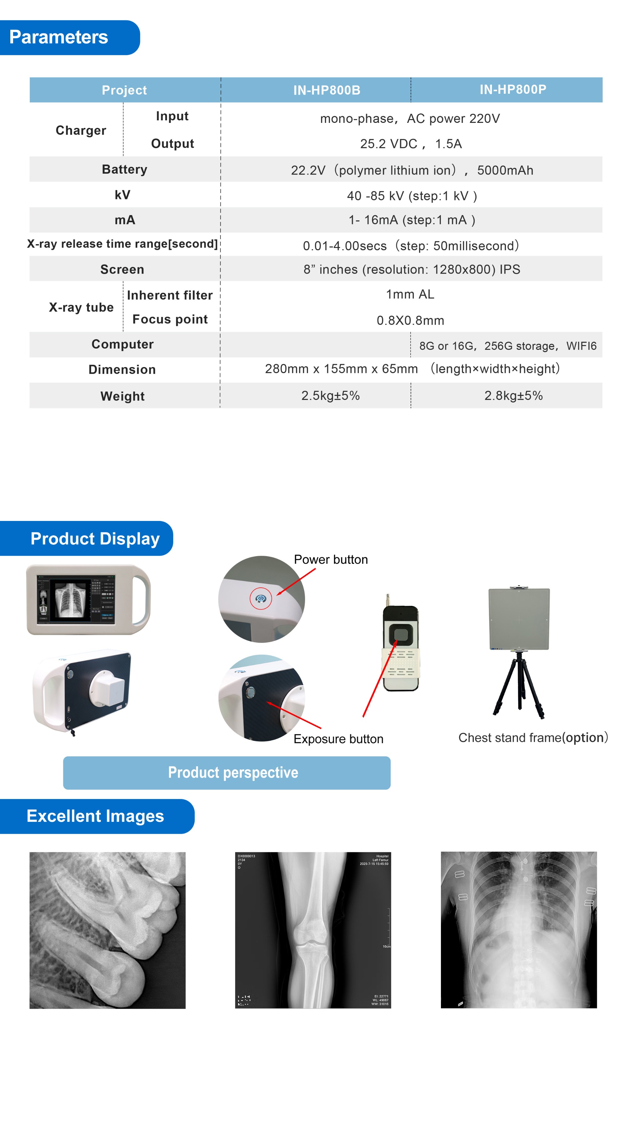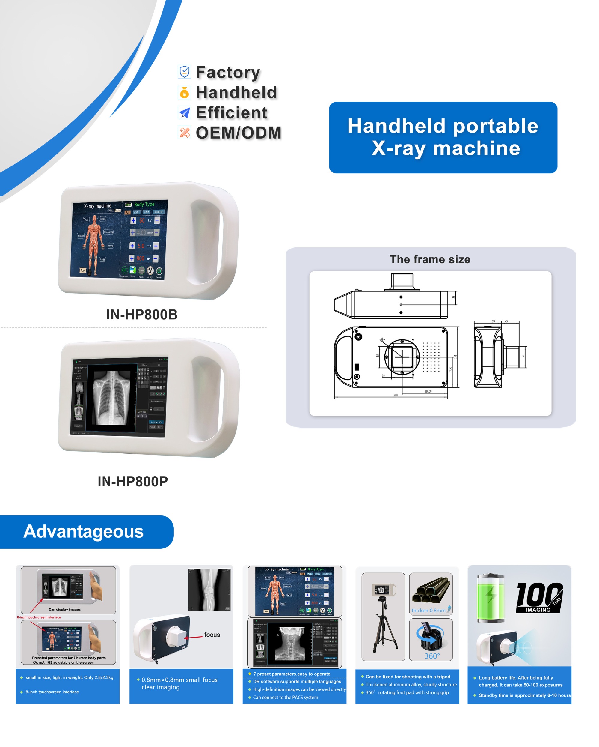 IN-HP800B/HP800P Radiography Machine Handheld Portable Digital Hand Switch Portable Xray Machine Human X Ray Machine